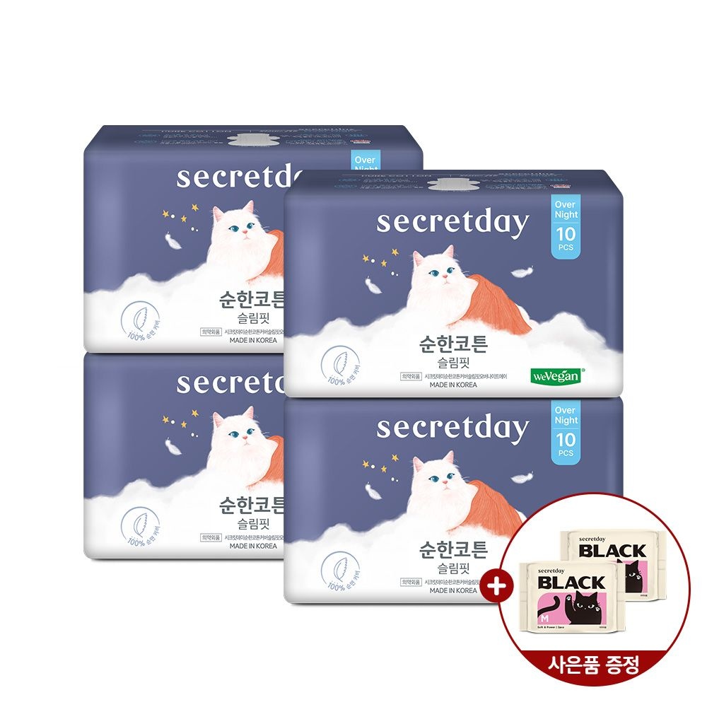 순한코튼슬림핏 오버나이트 10PX4팩+블랙중형 2PX2팩증정B