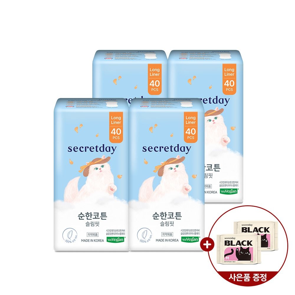 순한코튼슬림핏 롱라이너 40PX4팩+블랙중형2PX2팩증정B