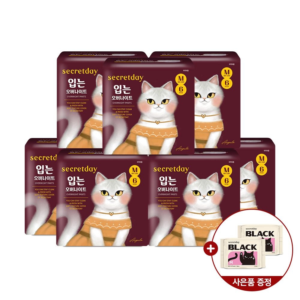 블랙 오버나이트 10P 6팩+순한코튼 슬림핏 중형2P 증정