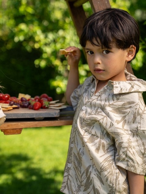 [코코노코] 반팔 셔츠,쇼츠 셋업_베이지 아레카야자