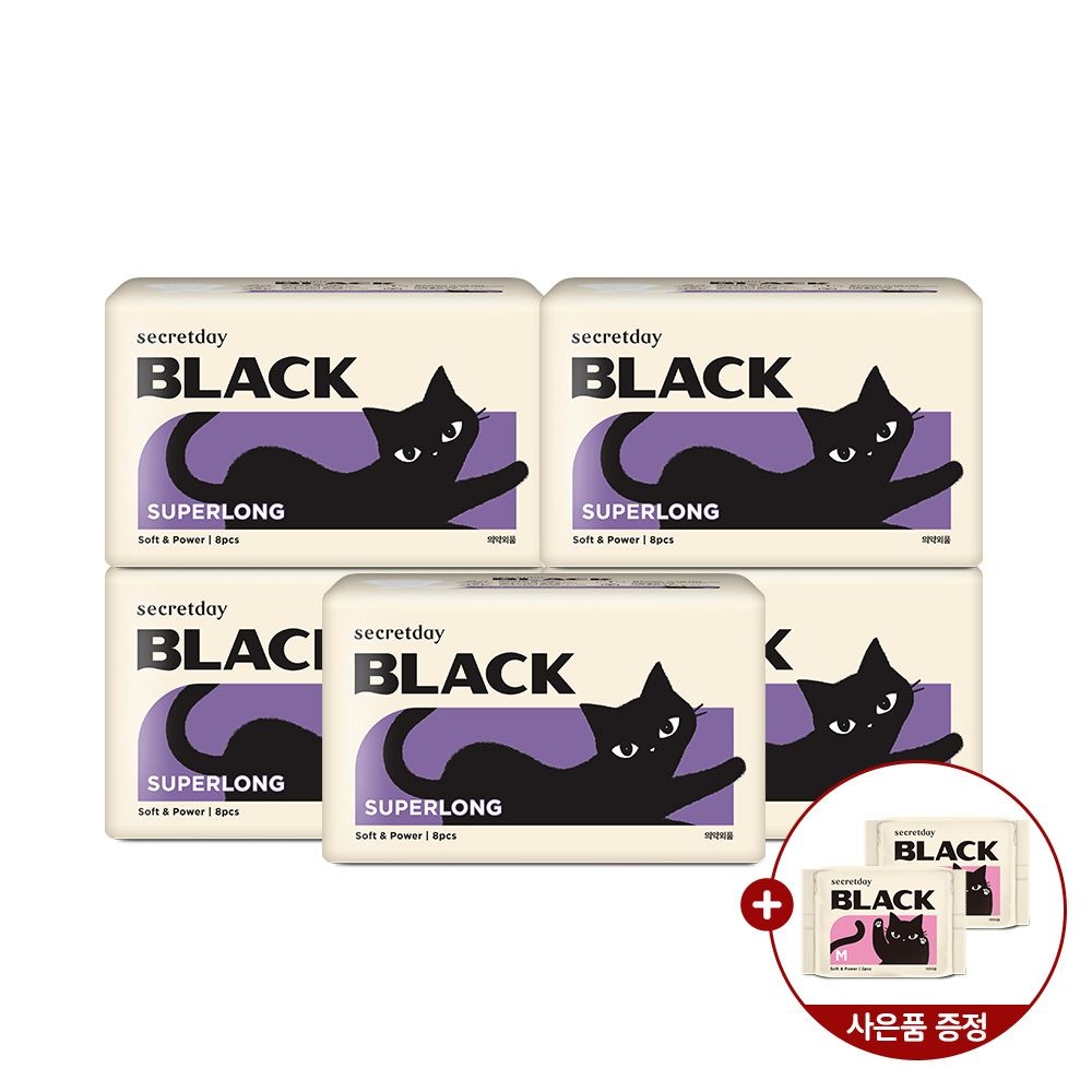 블랙 슈퍼롱 오버나이트 8P 5팩+블랙 중형 2PX2팩증정B