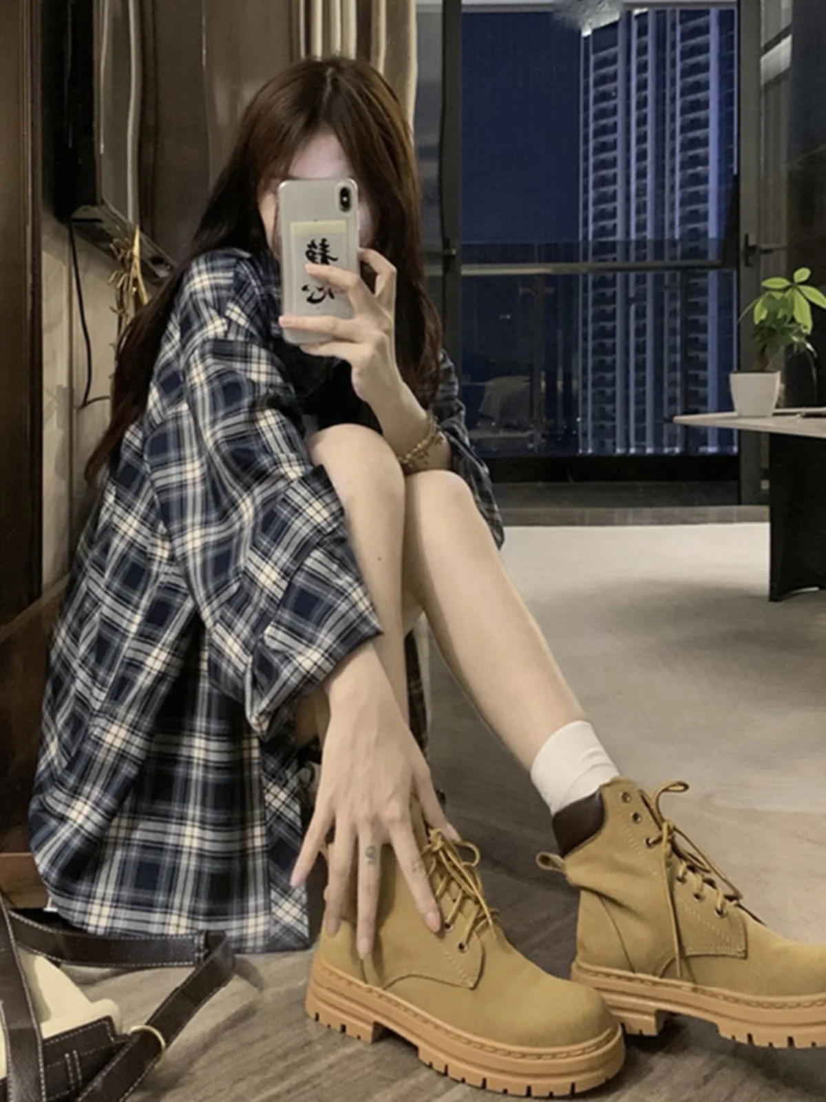 레트로 홍콩 스타일 체크무늬 긴팔 여성 셔츠 재킷 캐주얼 드레이프 디자인 봄 가을 탑 스트레이트 컷 봄 2025