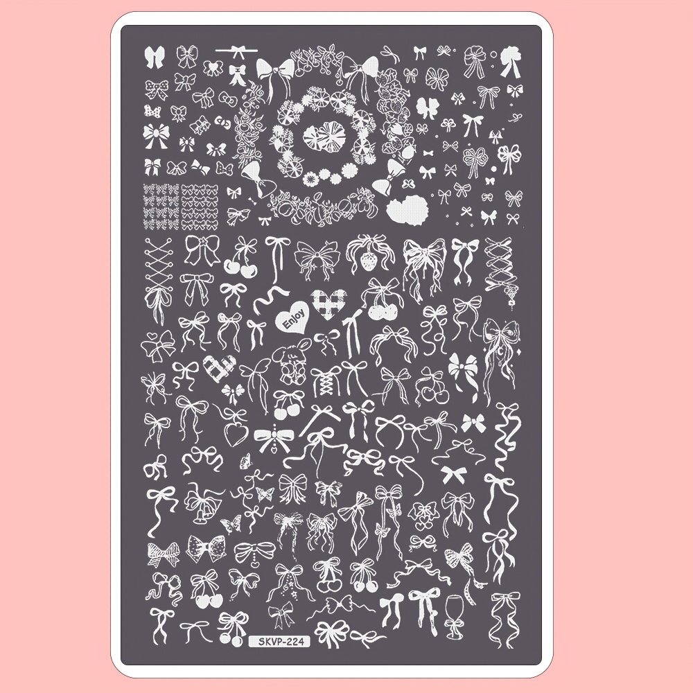TEMU 224 네일 & DIY 크리스마스 네일 템플릿용 호환 - 스틸 플레이트가 있는 투명 네일 프린팅 플레이트, 빠른 프로토타이핑, 네일 아트 디자인, 리본 & 겨울 패턴, 네일샵 또는 개인용 - 내구성 있는 전사 몰드 플레이트