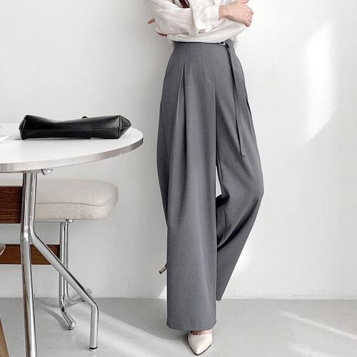 [신상오픈런]여성 맞주름 와이드 버클 반하이 슬랙스 하객룩 출근 스타일