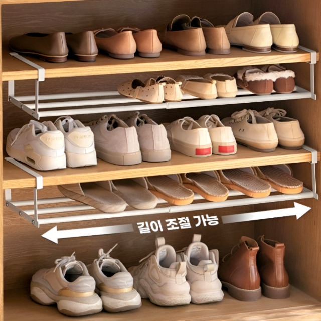 [엘홈]만능 길이조절 슈즈랙 선반 / 신발정리대 슈즈렉 현관정리 구두 슬리퍼 운동화정리 신발거치대