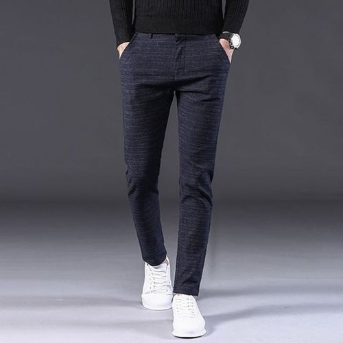 기모 일자 스판 남자 체크 무늬 정장 바지 남성 겨울 양복 신사 회사 바지 중년 40대 50대