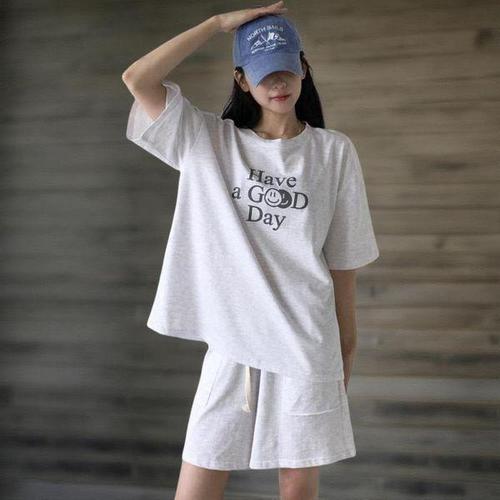 [신상오픈런]여성 오버사이즈 반팔티와 포켓 반바지 세트 면혼합 힙무드 스타일