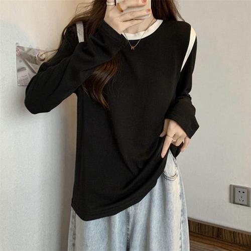 긴팔티 스판 여성의류 신상 라운드티 오버핏 반팔티