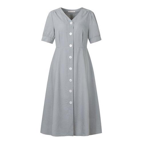[신원아울렛]셔링 디테일 버튼업 롱 원피스 SIOAG0586 B
