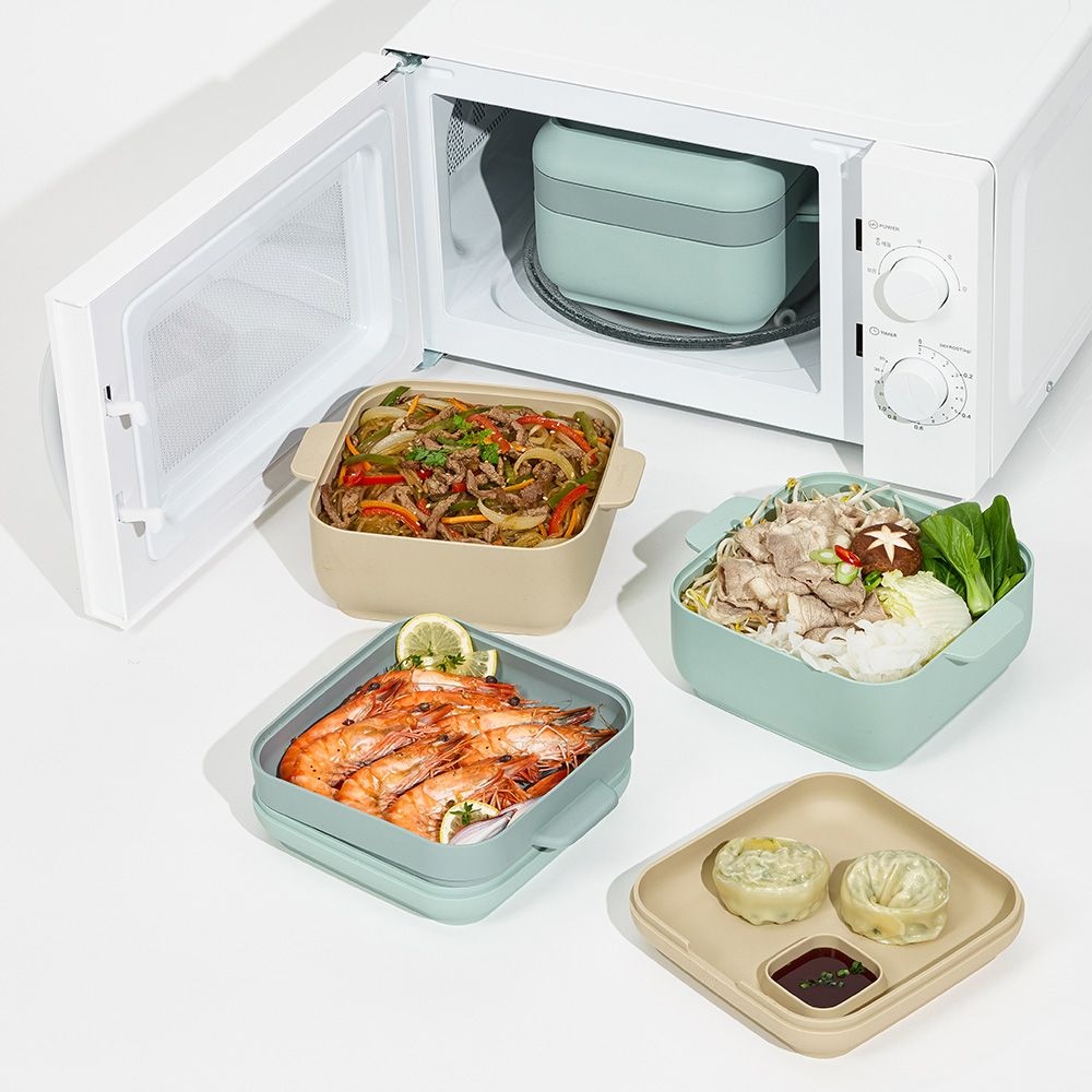 실리프랑 에코 실리콘 촉촉 2단 찜기, 버터베이지, 1개, 전자레인지 2단찜기