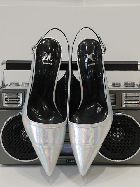 [디자이어로즈] 실버 스틸레토 슬링백 구두 3cm