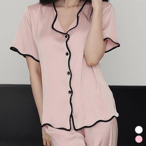 [에이치플러스몰]반팔파자마 파이핑 실키터치 배색파이핑 여성홈웨