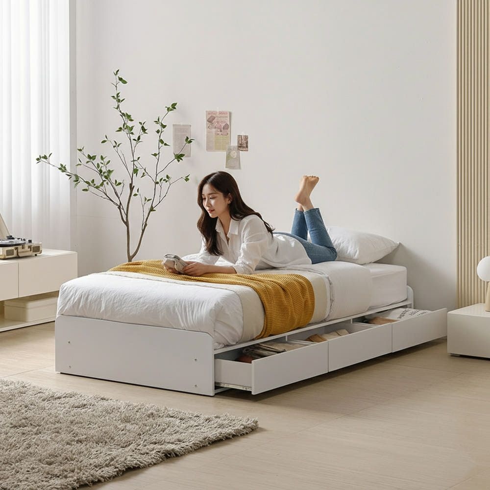 에이든 무헤드 서랍형 싱글침대 1인용 수납 좁은방 원룸 침대 프레임 1000
