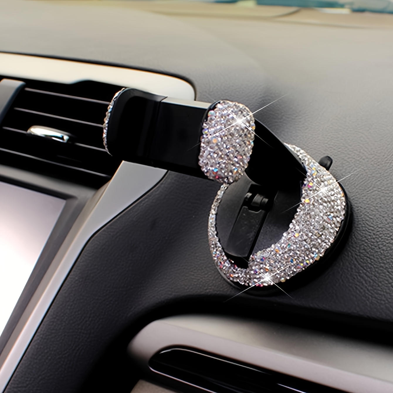 TEMU 1개 반짝이는 자동차 휴대폰 홀더, 충격 방지 및 조절 가능, 강력한 흡착 컵 베이스, 360° 회전 내비게이션 마운트