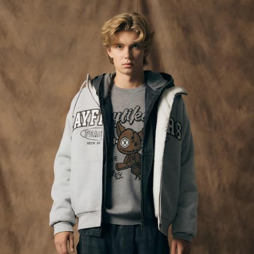 [써드케이]레이피커스 아플리케 양털보아 후드집업 BP