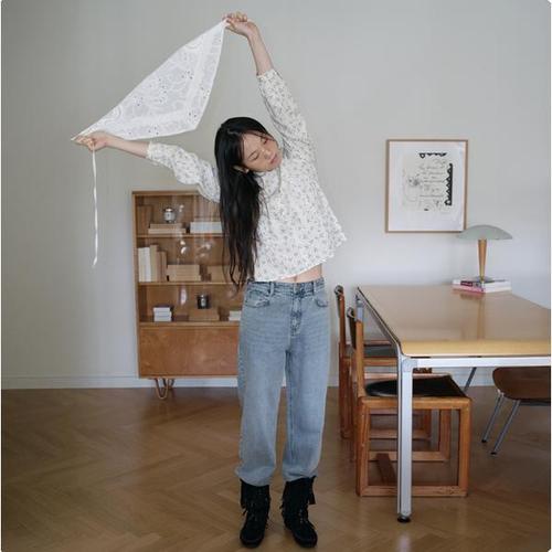 써스데이아일랜드 플라워 자수 모티브 데님 팬츠 T256MJE135W 858940