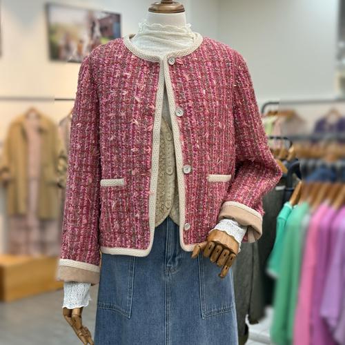 [써스데이아일랜드]라운드넥 트위드 자켓 T246MJK138W