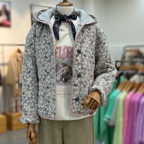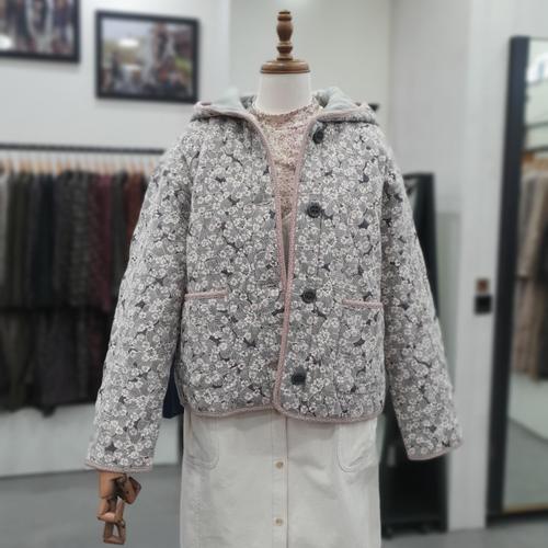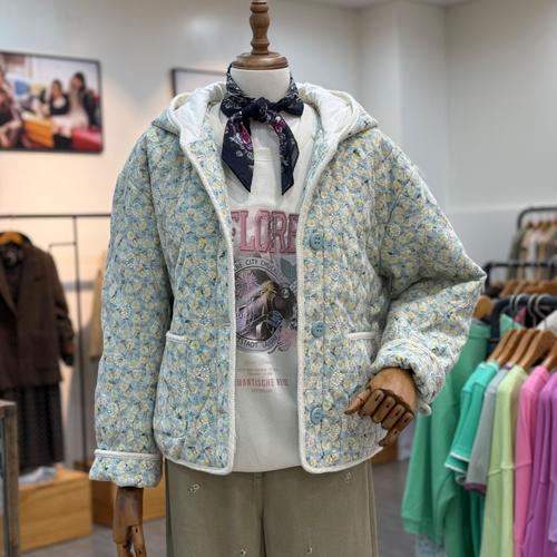 [써스데이아일랜드]퀼팅 후드 플라워 자수 점퍼 t246ajp535
