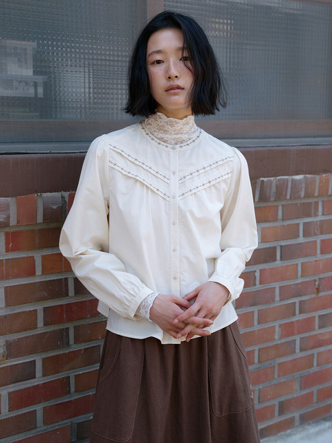 [써스데이 아일랜드] [KiiiKiii PICK] 빅카라 레이스자수 블라우스_T256MBL169W