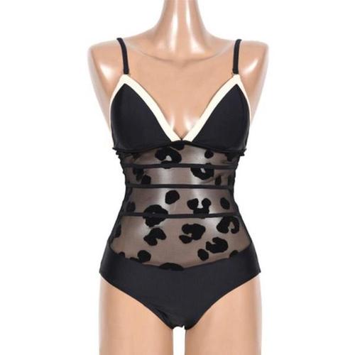 [옷자락]여자 블랙 시스루 포인트 배색 원피스 수영복