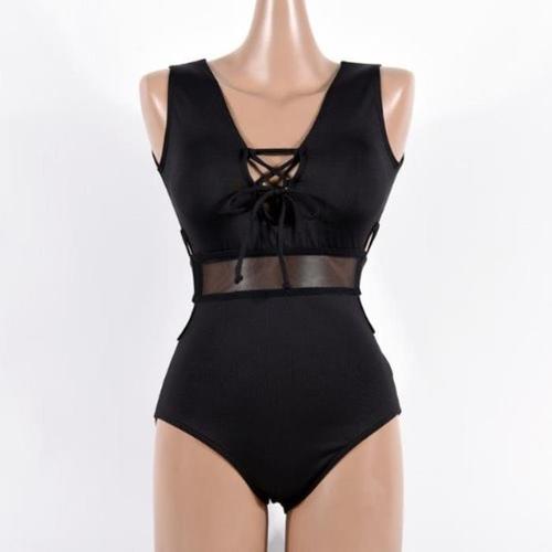 [옷자락]여자 시스루 탑긴팔 코르셋 홀터 모노키니 원피스 수영복_3