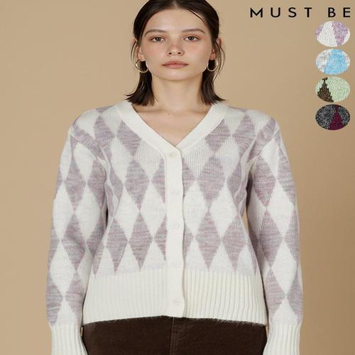 [머스트비]여성 브이넥 배색 아가일 가디건