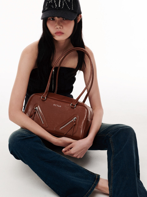 [엑타] 스퀘어 더블 지퍼 숄더백 [브라운]
