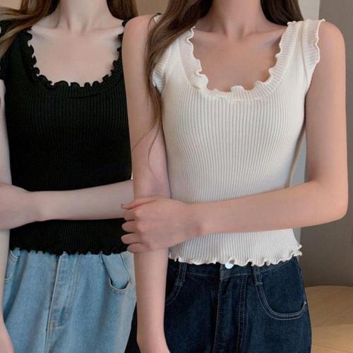 [오너클랜]인기상품 캡내장 셔링 여성 크롭 슬리브리스 탑 여름 나시웨어 [WFLLATW_260304]