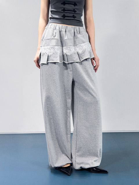 [아가모스] 플리츠 스커트 레이어드 스웻팬츠(그레이)