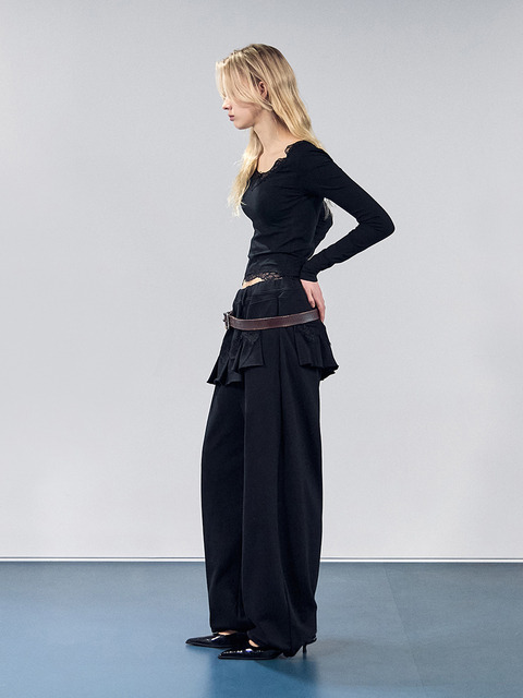 [아가모스] 플리츠 스커트 레이어드 스웻팬츠(블랙)