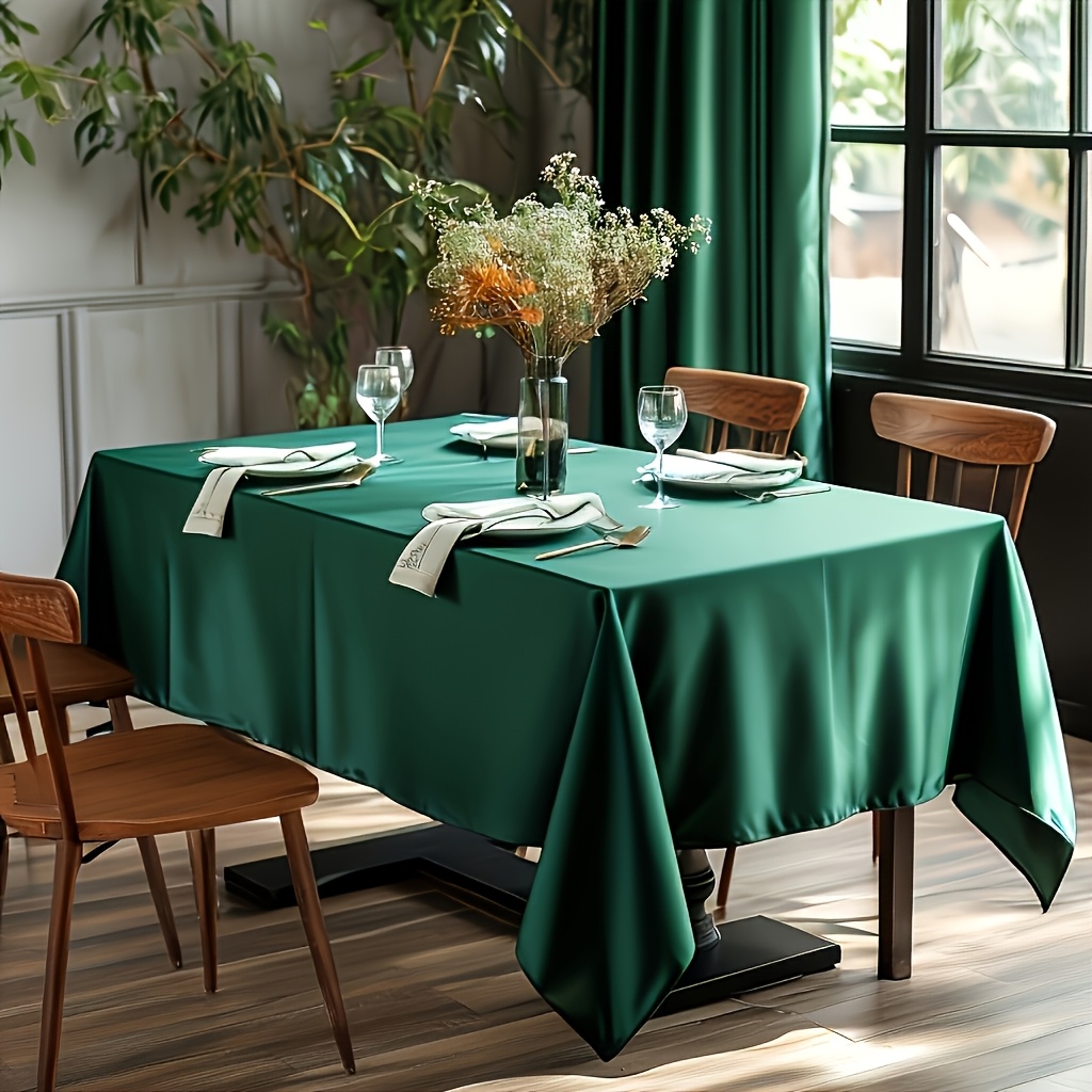 TEMU 1개 빈티지 다크 그린 새틴 텍스처 직사각형 테이블보, 다양한 크기, 가족 모임, 식탁, 커피 테이블, 레스토랑, 디저트 테이블, 야외 피크닉, 결혼식, 생일, 크리스마스, Eid, 추수감사절에 적합