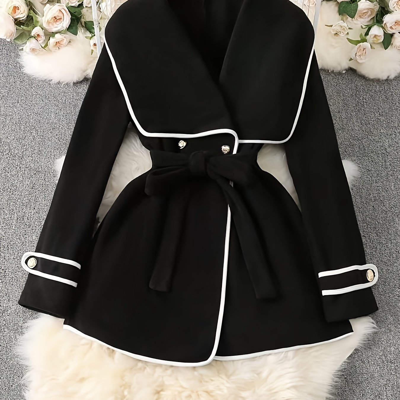TEMU 여성용 우아한 블랙 & 화이트 대비 재킷 - 버튼 앞면 클로저가 있는 구조 , 사계절용 포멀 & 캐주얼 아우터 (사무실, 파티, 일상복) - 여성용 프로페셔널 코트, 파티 복장, 세련된 테일러링, 오피스 웨어