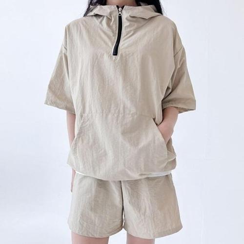[엄지척]반집업 후드 아노락 반바지 세트 여자 바람막이 셋업_20300378_667501