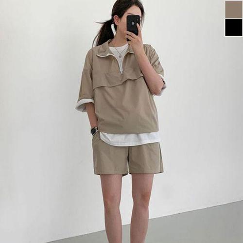[셀러허브_여성트랜드패션]키작녀 반바지 반팔 세트 반집업 루즈핏 아노락 셋업