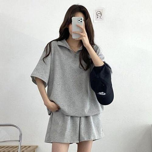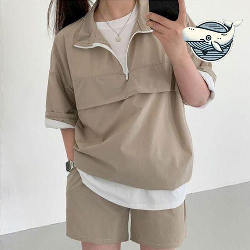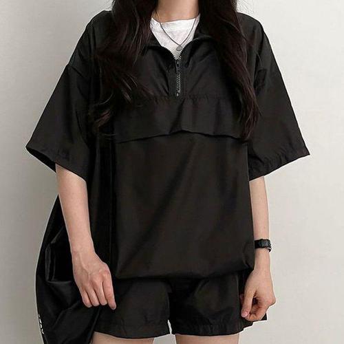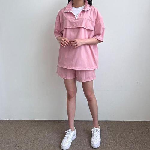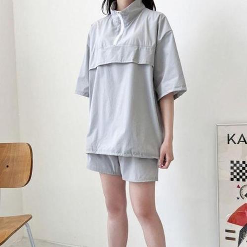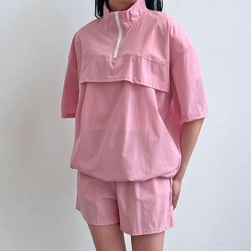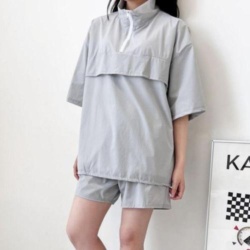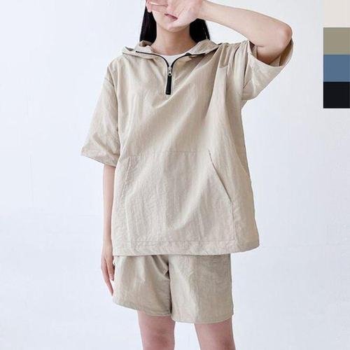[에이치플러스몰]여성 루즈핏 아노락 반집업 스타일 반팔 반바지 세트