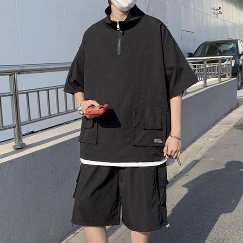 [에이치플러스몰]남자 아노락 반집업 반팔 밴딩 반바지 세트 운동복