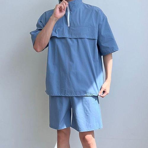 [에이치플러스몰]반집업 반팔 반바지 아노락 세트 운동복 무지 일상복
