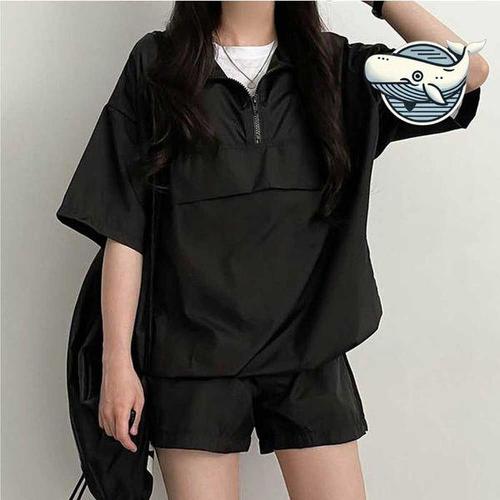 [셀러허브_여성트랜드패션]여자 반팔 아노락 캐주얼 베이직 반팔반바지세트 여자트레이닝 세트 세 아노락..