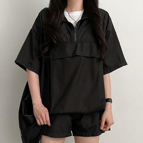 [라일리의류] Rly 여성 여름 외출 아노락 반바지 반팔 트레이닝 세트