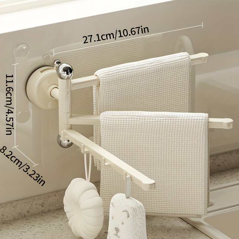 TEMU 공간 절약형 회전식 목욕 타월 홀더 - 360° 회전 암이 있는 튼튼한 3개 타월 정리대, 벽걸이형 접이식 욕실 랙 (작은 공간, 아파트, 호텔용) - 간편한 설치, 도구 불필요 - 내구성 좋은 플라스틱 구조