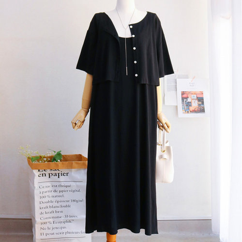 레이츄 / 빅사이즈 끈 나시 롱 원피스 코디 세트 (66-110)