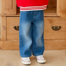 UPPERCUT 주니어 데님 와이드팬츠 아동 밴딩청바지 키즈 통바지 초등학생 청바지 워싱 데님팬츠 남녀공용
