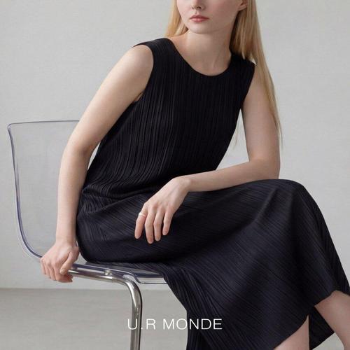 [유아몽드]페미닌 슬릿 입체 플리츠 롱 원피스 4color 루즈핏 우