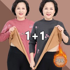 꽃소담 70대 80대 할머니 플라워 자수 기모 긴팔 니트 티셔츠 보온 내복 히트 방한 내의 상의 이너티 HXY755