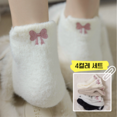 [4켤레] 그레이블 리본포인트 무압박 수면양말 따뜻한 보온 덧신