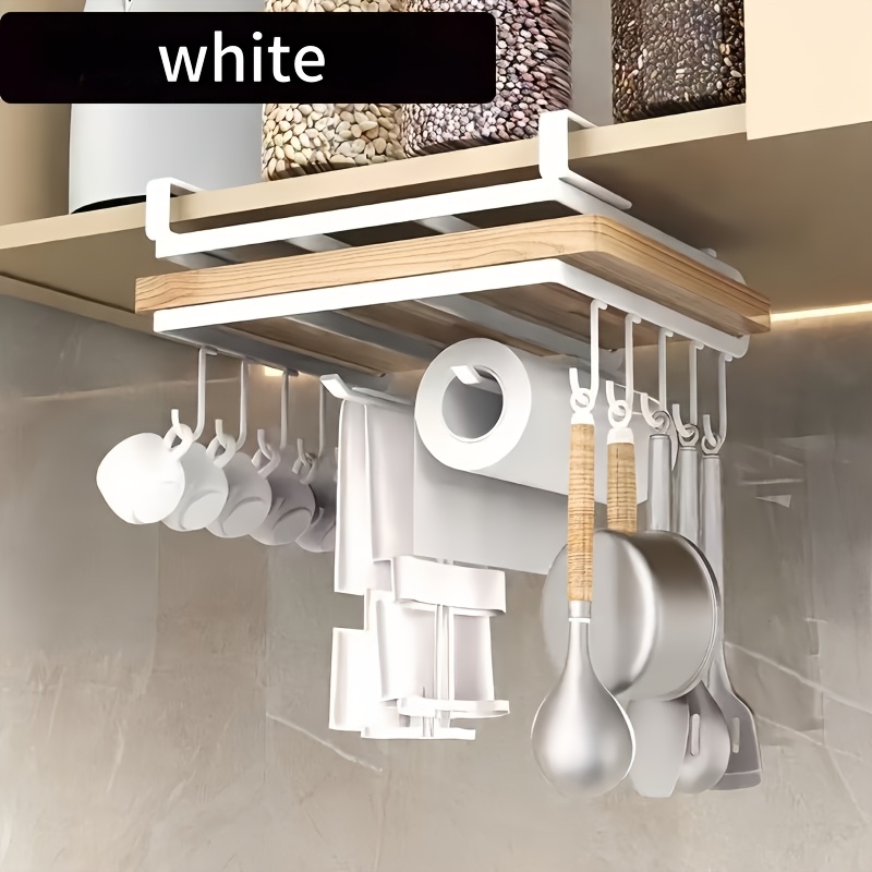 TEMU 1 다기능 주방 벽걸이 수납 선반, 10개의 후크 포함, 칠판, 종이 타월, 천 등 주방 도구에 적합, 드릴 없는 설치, 두꺼운 재질, 주방 액세서리 및 정리함, 냄비 랙