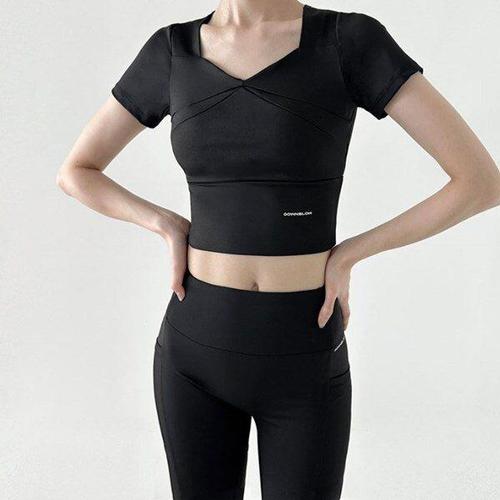 [신상오픈런]여성용 크롭 반팔 티셔츠 레깅스 세트 5부 스포츠웨어