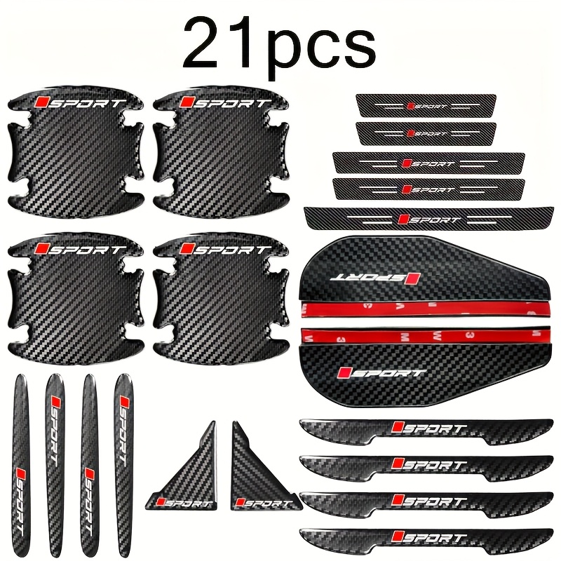 TEMU 21개 풀세트 차량 스포츠 로고 보호 필름, 도어 스텝 가드, 도어 손목 보호대, 도어 핸들 바, 미러 커버 스트립 및 도어 포함 카본 파이버 소재, 모든 모델에 적합|손목보호대