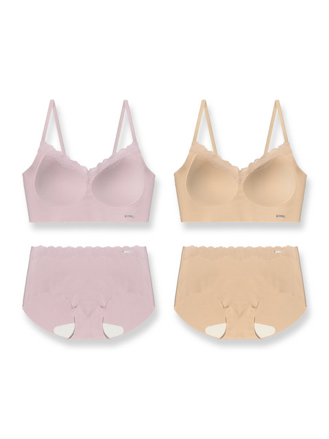 [파티아라] 퓨징 심리스 블라썸 노와이어 브라렛 팬티 4종 세트 (브라2 + 팬티2)