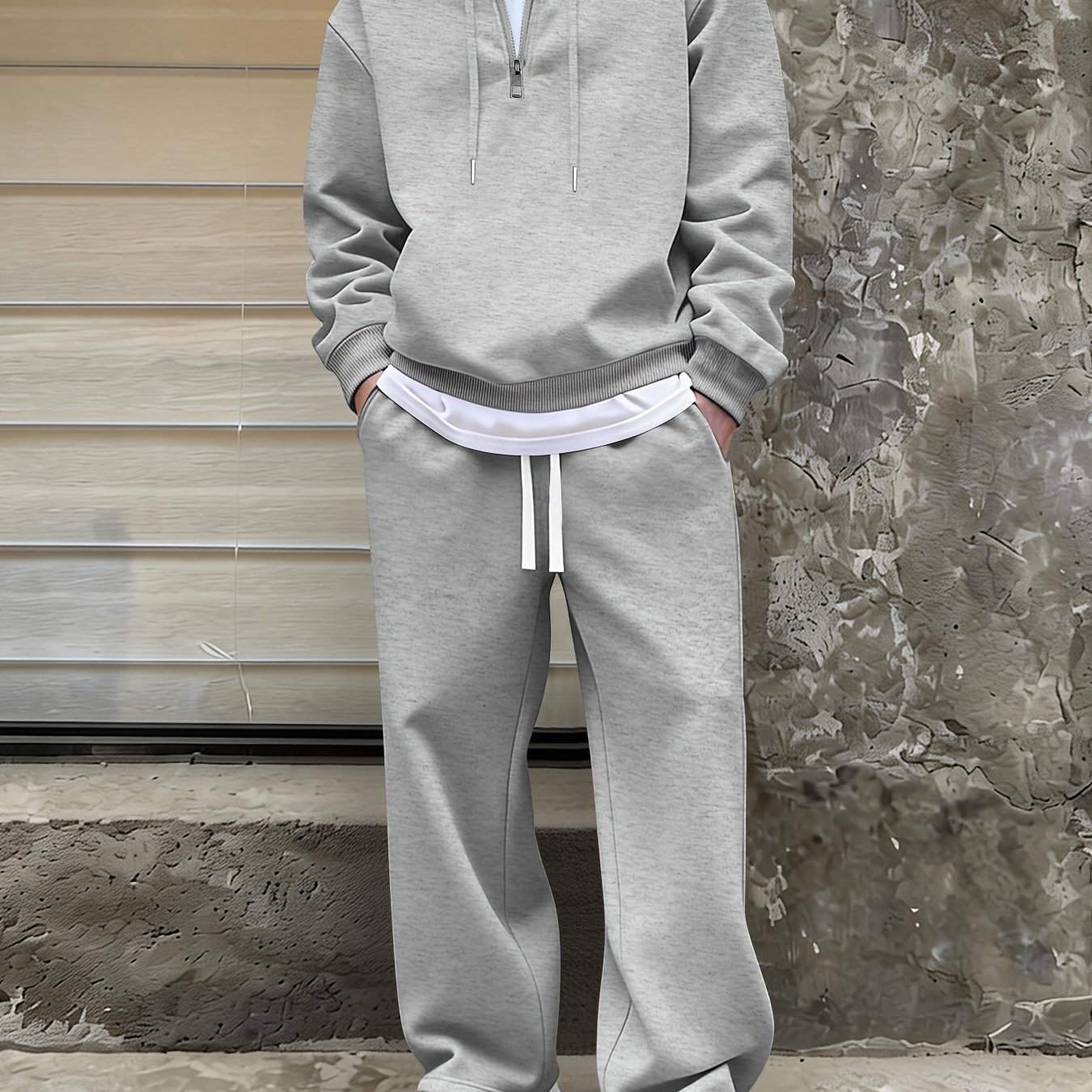 TEMU 스타 덴스 OBM 남성 캐주얼 후드 세트, 하프 지퍼, 겨울 아웃핏, 스타일리시 솔리드 컬러 레저 수트, 고품질 남성 트랙수트, 겨울 컬렉션, 패셔너블 남성 의류, 남자친구 선물